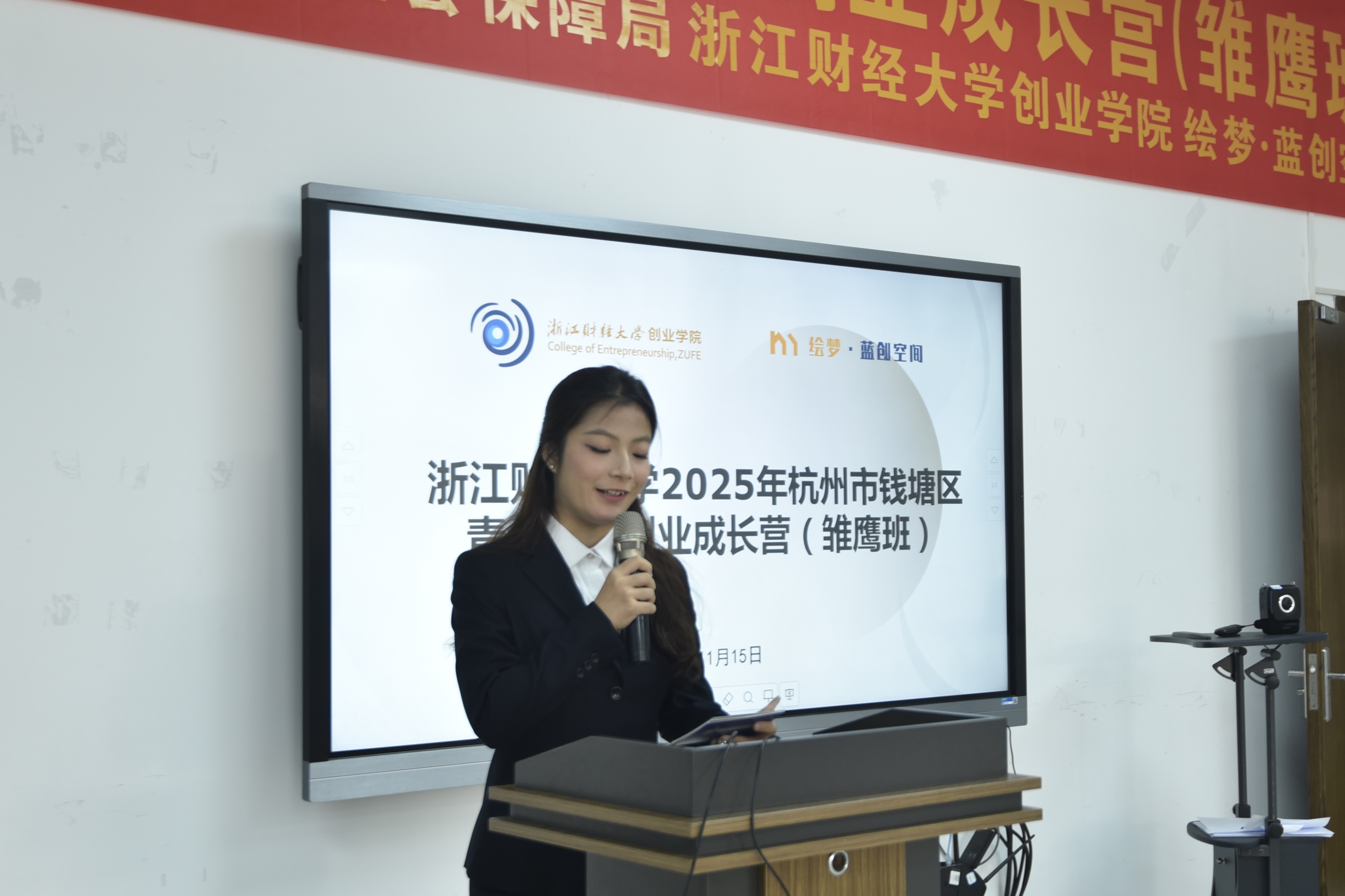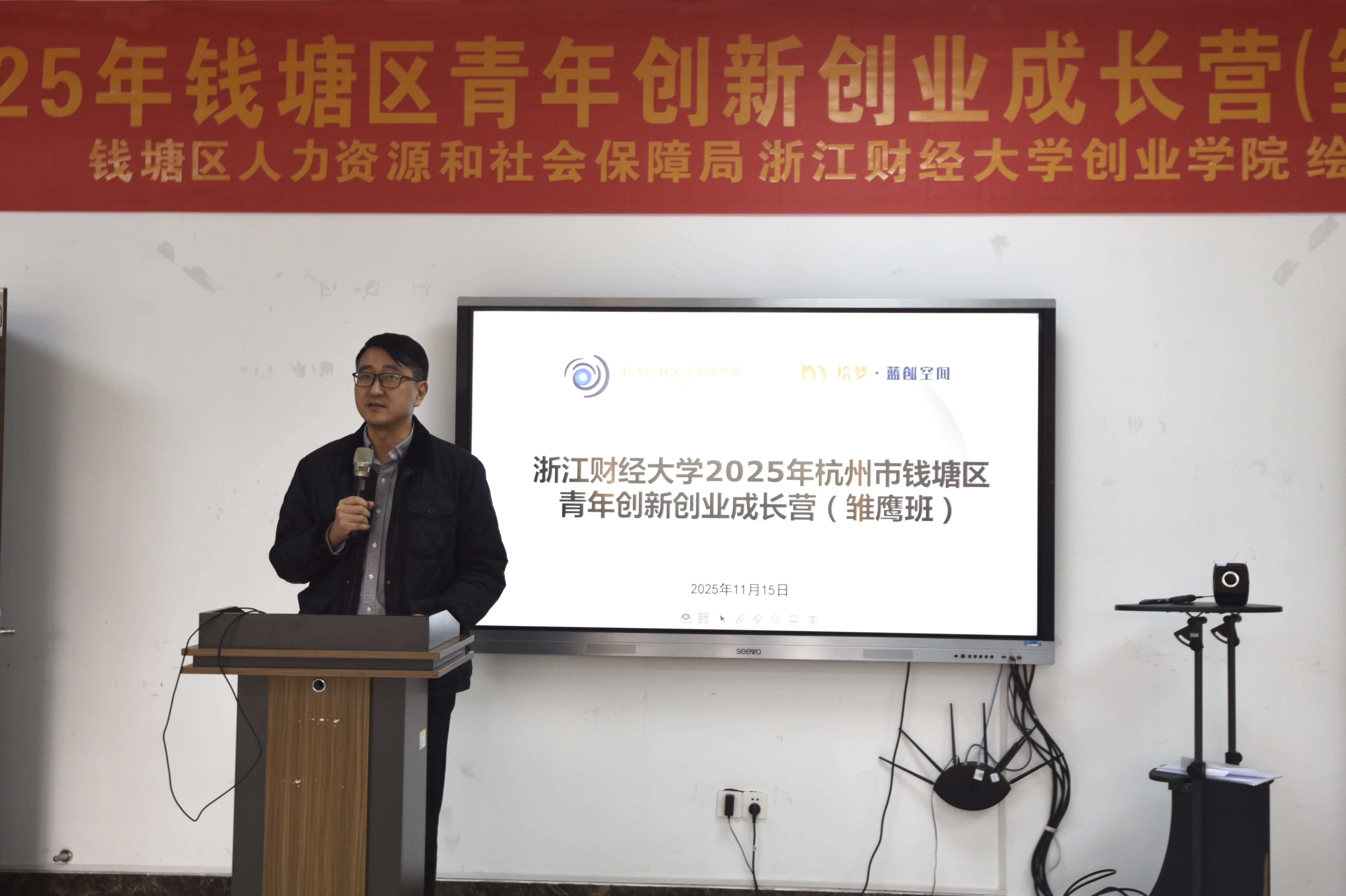 11月15日至18日,2025年杭州市钱塘区青年创业创新成长营(雏鹰班)在浙江财经大学站顺利开班。本期成长营由杭州市钱塘区人力资源和社会保障局主办,浙江财经大学创业学院、绘梦蓝创空间承办;旨在帮助在校大学生深入了解创业实战知识,加强大学生初创企业创业者的创新创业能力,促进初创企业的健康、良性发展。