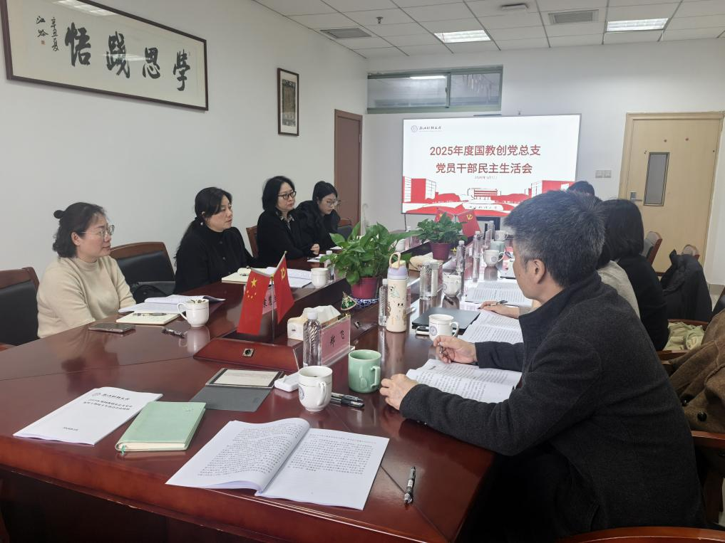 为深入学习贯彻习近平新时代中国特色社会主义思想和党的二十届四中全会精神,锲而不舍落实中央八项规定精神,推进作风建设常态化长效化,3 月 5 日上午,国教创党总支在 E 楼 103A 会议室召开 2025 年度民主生活会。校领导申屠莉、学校督导组朱丹、袁慧兰、韦旭敏到会指导,党总支全体党员领导干部参加会议。