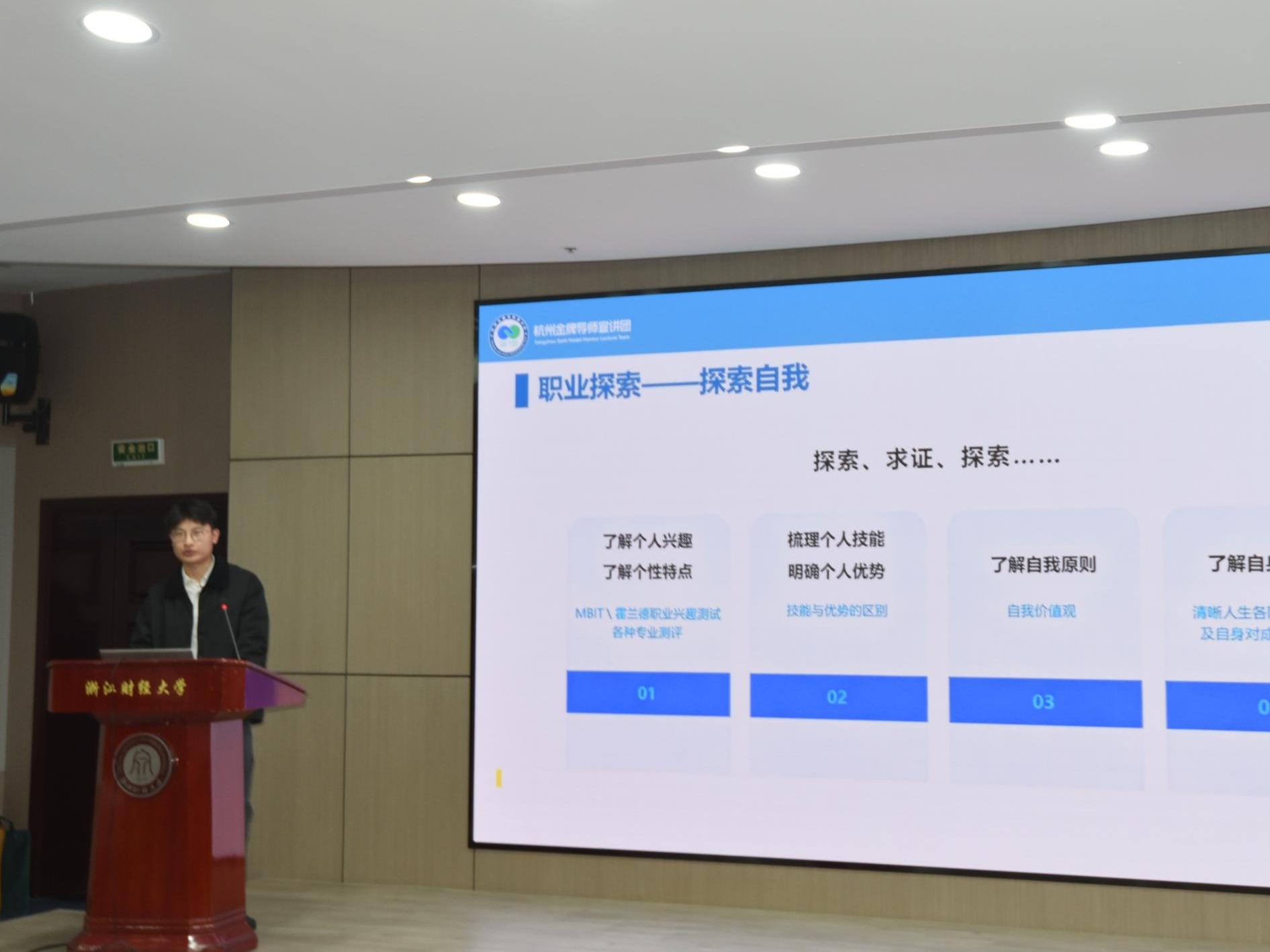 为助力大学生科学规划职业发展路径、全面提升职场核心竞争力,4月14日下午,在杭州市就业管理服务中心指导下,我校顺利举办杭州市就业公共服务金牌导师宣讲团进高校宣讲活动暨蓝创大讲堂第69期——职业规划与校招求职攻略专题讲座,特邀国科大杭州高等研究院就业主管吴浩老师主讲,吸引众多学子到场聆听学习。